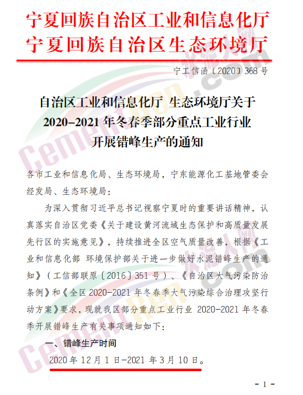 1.組織制定錯峰生產(chǎn)實施方案。各市工業(yè)和信息化局、生態(tài)環(huán)境局要聯(lián)合制定本市的水泥熟料企業(yè)錯峰生產(chǎn)實施方案(見附件),明確錯峰生產(chǎn)企業(yè)清單及停窯時間節(jié)點,實行臺賬管理,確保清單可操作性、可查詢。并在11月27日(星期五)前分別報自治區(qū)工信廳、生態(tài)環(huán)境廳,公示公告后實施。2.建立錯峰生產(chǎn)調(diào)度制度。各市工信部門要按照行業(yè)管理職責(zé),建立錯峰生產(chǎn)工作調(diào)度制度(自2020年12月起,各市每月6日前報上報上月錯峰生產(chǎn)工作落實情況,直至錯峰生產(chǎn)結(jié)束),隨時掌握重點企業(yè)錯峰生產(chǎn)動態(tài),對錯峰生產(chǎn)執(zhí)行情況進行督促督導(dǎo),及時協(xié)調(diào)解決錯峰生產(chǎn)中出現(xiàn)的問題。3.強化監(jiān)督檢查。各市工業(yè)和信息化局、生態(tài)環(huán)境局要提前檢查企業(yè)停窯準(zhǔn)備工作情況,督促所轄企業(yè)按規(guī)定時間停窯,及時對轄區(qū)內(nèi)水泥企業(yè)進行指導(dǎo)、監(jiān)督和檢查,12月1日要組成聯(lián)合檢查組到現(xiàn)場監(jiān)督企業(yè)停窯,期間要不定時抽查停窯落實情況。必要時通過調(diào)取企業(yè)用電情況進行實時監(jiān)控。生態(tài)環(huán)境部門要通過污染物排放在線監(jiān)測平臺,及時了解掌握企業(yè)錯峰生產(chǎn)執(zhí)行情況,組織開展冬季大氣污染防治專項執(zhí)法檢查,依法查處超標(biāo)排放,監(jiān)測數(shù)據(jù)弄虛作假、違反排污許可證規(guī)定排放污染物的違法行為。要加大服務(wù)力度,協(xié)調(diào)督導(dǎo)各企業(yè)在錯峰生產(chǎn)期間統(tǒng)籌做好設(shè)備檢修、技術(shù)改造等工作,嚴(yán)格落實企業(yè)排放限值要求,有效降低供暖季大氣污染,著力改善環(huán)境空氣質(zhì)量。要進一步暢通舉報渠道,及時在門戶網(wǎng)站上向社會公開電話、傳真、電子郵箱、網(wǎng)絡(luò)等多種舉報渠道,對不執(zhí)行行規(guī)行約、不守信不開展錯峰生產(chǎn)的企業(yè)通過媒體公開曝光。4.嚴(yán)格責(zé)任追究。自治區(qū)工信廳、生態(tài)環(huán)境廳將不定期開展錯峰生產(chǎn)執(zhí)行情況和污染物達標(biāo)排放的專項監(jiān)督檢查。對不執(zhí)行行規(guī)行約,不守信不開展錯峰生產(chǎn)的企業(yè),必要時進行約談;對拒不改正的企業(yè)由自治區(qū)工信廳核實后,在年度更新并公告的水泥熟料生產(chǎn)線清單中注明,限制其產(chǎn)能置換指標(biāo)交易,并取消享受自治區(qū)工信廳的各類獎補政策,列入嚴(yán)重違法失信企業(yè)名單。自治區(qū)生態(tài)環(huán)境保護領(lǐng)導(dǎo)小組辦公室將錯峰生產(chǎn)執(zhí)行情況納入自治區(qū)黨委督查室、政府督查室和冬春季大氣攻堅行動下派工作組幫扶指導(dǎo)內(nèi)容。原文如下: