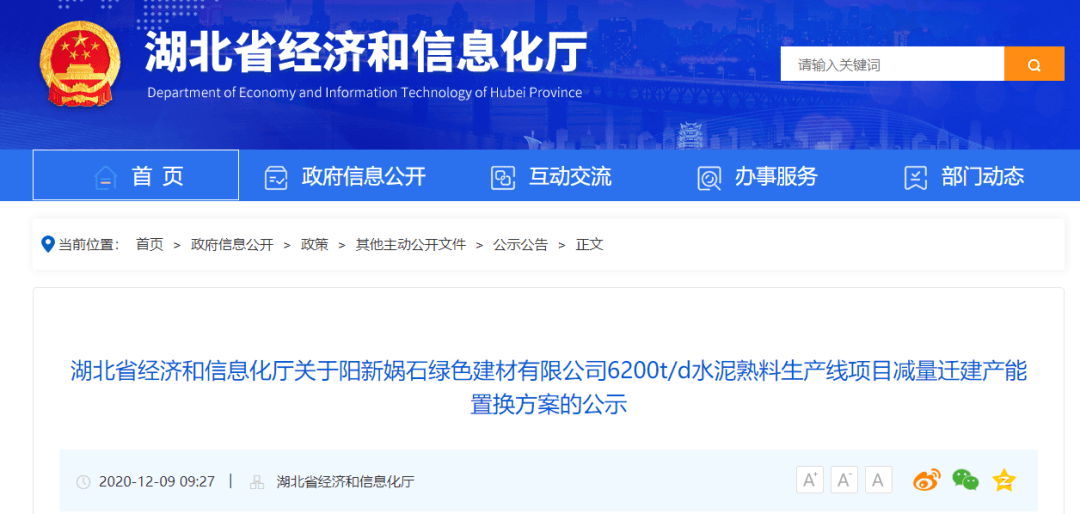 日前,湖北省工信廳發(fā)布《關(guān)于陽新媧石綠色建材有限公司6200t/d水泥熟料生產(chǎn)線項目減量遷建產(chǎn)能置換方案的公示》。公示內(nèi)容為日產(chǎn)6200噸水泥熟料建設(shè)項目搬遷方案。
