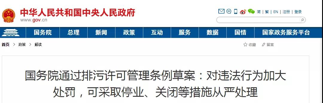 從征求意見至今歷時兩年多時間,《排污許可管理條例(草案)》獲得通過。會議明確根據(jù)污染物產(chǎn)生量、排放量、對環(huán)境影響程度等,對排污單位實行分類管理,規(guī)范排污許可證申請審批程序,要求排污單位建立環(huán)境管理臺賬記錄制度、公開排放信息,強調加強事中事后監(jiān)管,對違法行為加大處罰力度,采取按日連續(xù)處罰和停產(chǎn)整治、停業(yè)、關閉等措施從嚴處理,提高違法成本。會議還研究了其他事項。