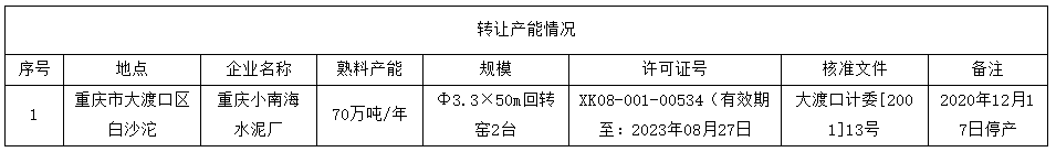 標(biāo)的系70萬噸/年干法水泥熟料生產(chǎn)線產(chǎn)能指標(biāo),擬按現(xiàn)狀以不低于轉(zhuǎn)讓底價11000萬元協(xié)議或競價整體轉(zhuǎn)讓,標(biāo)的基本情況如下: