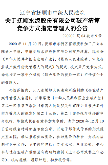 一、遼寧撫順?biāo)喙煞萦邢薰敬娈a(chǎn)清算競爭方式指定管理人