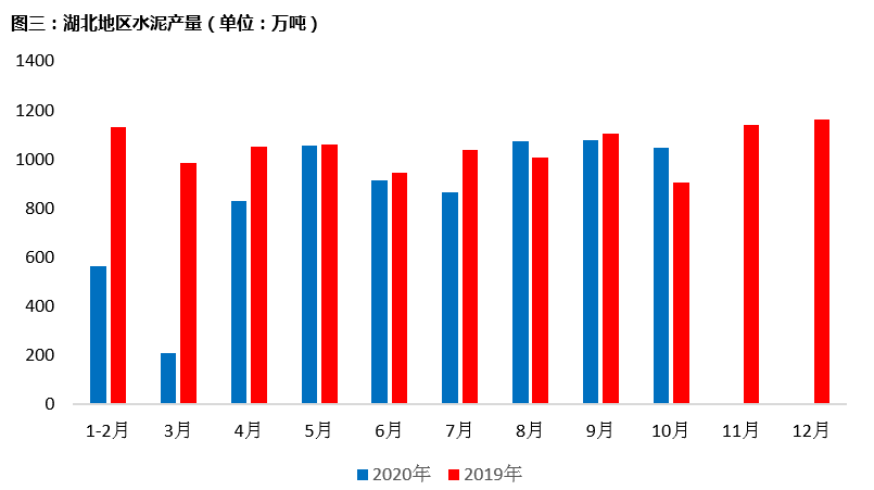 據(jù)國家統(tǒng)計局數(shù)據(jù)顯示,2020年10月,湖北地區(qū)水泥產(chǎn)量為1049.33萬噸,同比上升13.7%。湖北水泥市場需求相較于去年有所回落,據(jù)國家統(tǒng)計局數(shù)據(jù)顯示,截止2020年10月,湖北省房地產(chǎn)總投資為3843.42億元,同比下跌11.8%。市場需求不佳情況下,產(chǎn)量同比上升,外來水泥持續(xù)沖擊,湖北地區(qū)水泥價格后續(xù)上漲難度加大。