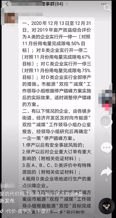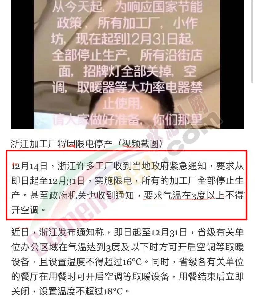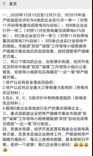 除以上地區(qū)外,湖南懷化、永州等地也已于12月5日起正式啟動(dòng)有序用電。網(wǎng)絡(luò)上也有不少工廠“曬”出了現(xiàn)狀并表示,確實(shí)已經(jīng)開(kāi)始限電和停限產(chǎn)了。