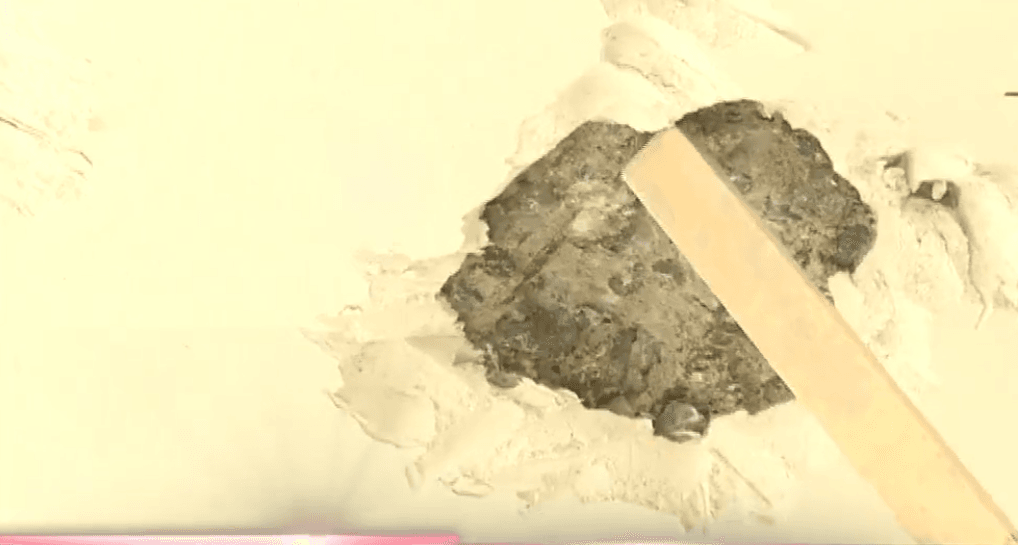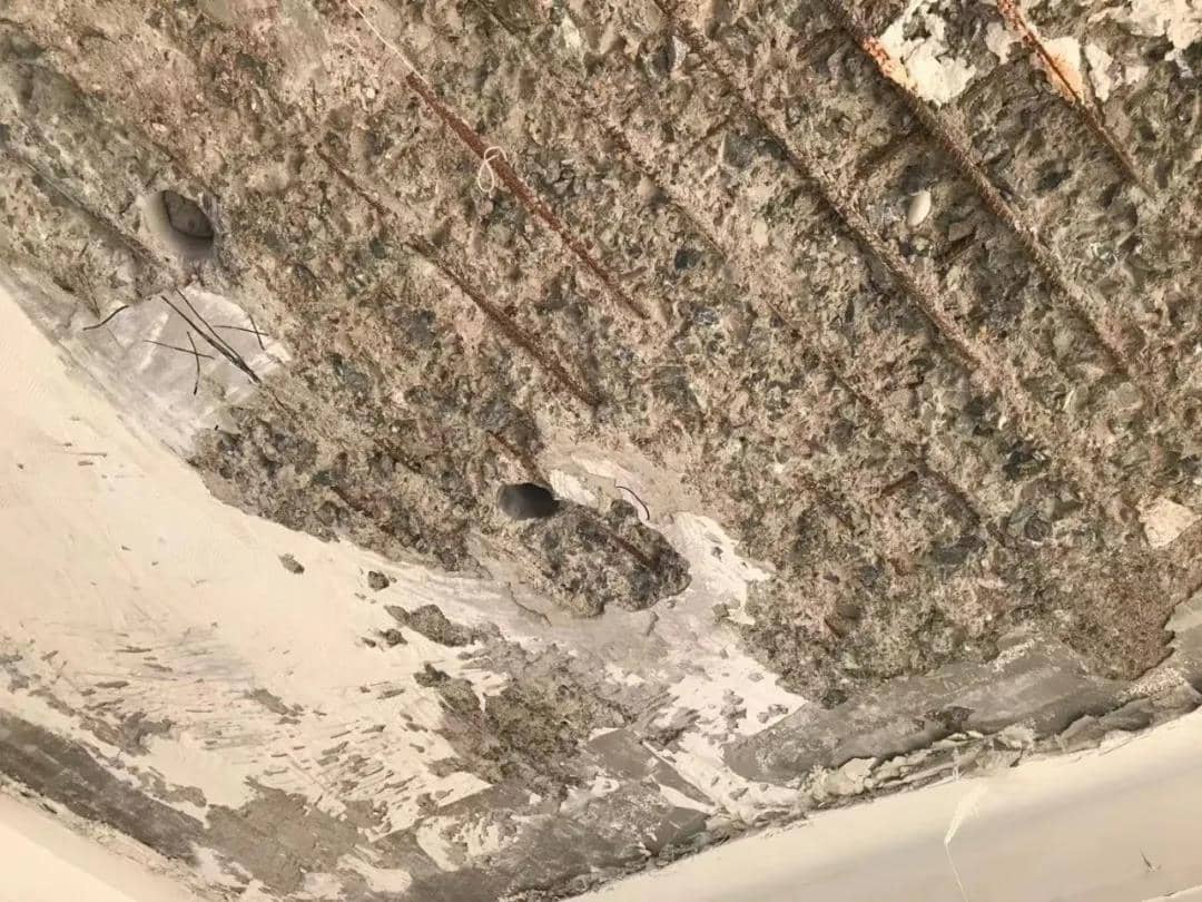 12月15日,長春市民曹先生向本報投訴:他在亞泰山語湖購買的新房,已裝修完畢,發(fā)現(xiàn)棚頂一戳就掉水泥渣。亞泰山語湖的物業(yè)人員過來,把裝修好的頂棚都刮掉,一刮棚頂?shù)匿摻铖R上裸露出來,而且全都銹跡斑斑。“最可氣的是,他們刮完之后,沒有個解決方案,到現(xiàn)在也沒個說法!”曹先生告訴記者。