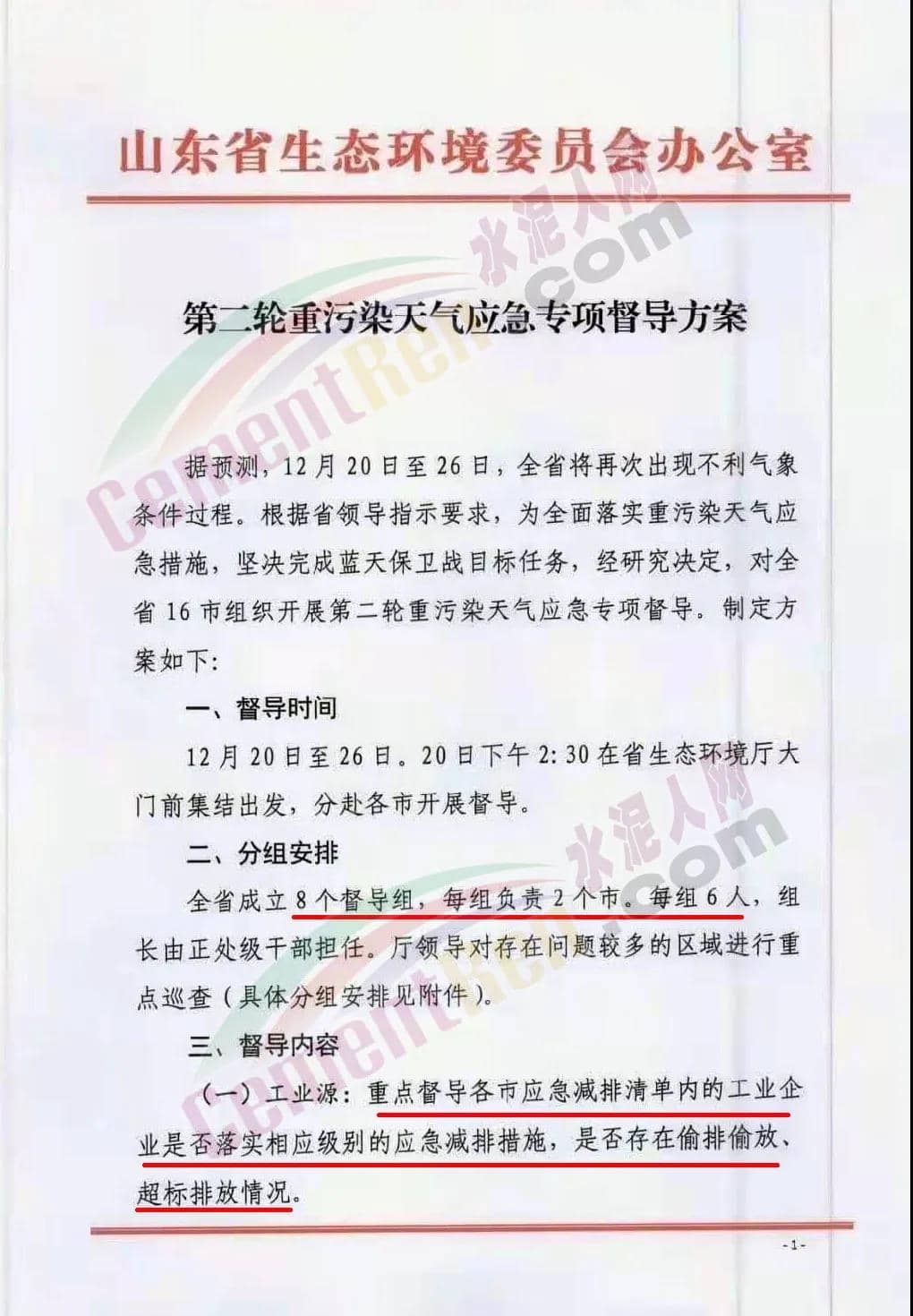 日前,山東省生態(tài)環(huán)境委員會辦公室發(fā)布《第二輪重污染天氣應(yīng)急專項督導(dǎo)方案》稱,據(jù)預(yù)測,12月 20日至 26 日,全省將再次出現(xiàn)不利氣象條件過程。根據(jù)省領(lǐng)導(dǎo)指示要求,為全面落實重污染天氣應(yīng)急措施,堅決完成藍天保衛(wèi)戰(zhàn)目標任務(wù),經(jīng)研究決定,對全省 16 市組織開展第二輪重污染天氣應(yīng)急專項督導(dǎo),制定方案如下∶