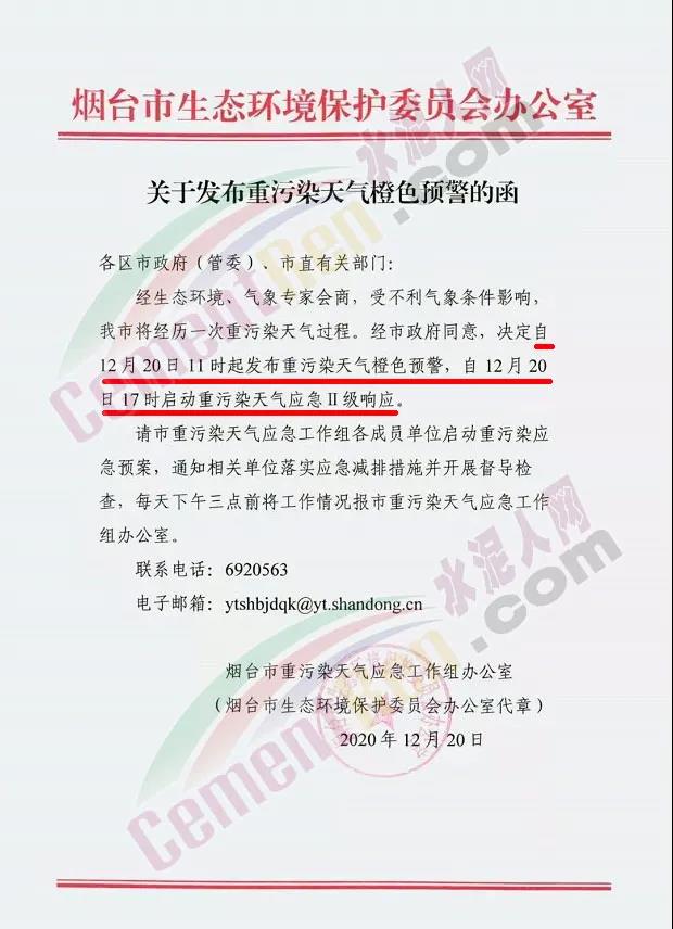 據(jù)了解,本次督導(dǎo)將采取“四不兩直”的方式開展工作,以落實重污染天氣差異化減排措施、揚塵管控、柴油貨車等高污染車輛管理為重點,堅持問題導(dǎo)向、目標導(dǎo)向,逐級傳導(dǎo)壓力、壓實責任,對影響人民群眾獲得感、幸福感,頂風(fēng)違法違規(guī)的典型問題,堅決查處一批、曝光一批。 12月20日煙臺市生態(tài)環(huán)境保護委員會辦公室發(fā)布《關(guān)于發(fā)布重污染天氣橙色預(yù)警的函》稱,經(jīng)生態(tài)環(huán)境、氣象專家會商,受不利氣象條件影響,煙臺市將經(jīng)歷一次重污染天氣過程。經(jīng)煙臺市政府同意,決定自 12月20日11時起發(fā)布重污染天氣橙色預(yù)警,自12月20日17時啟動重污染天氣應(yīng)急Ⅱ級響應(yīng)。