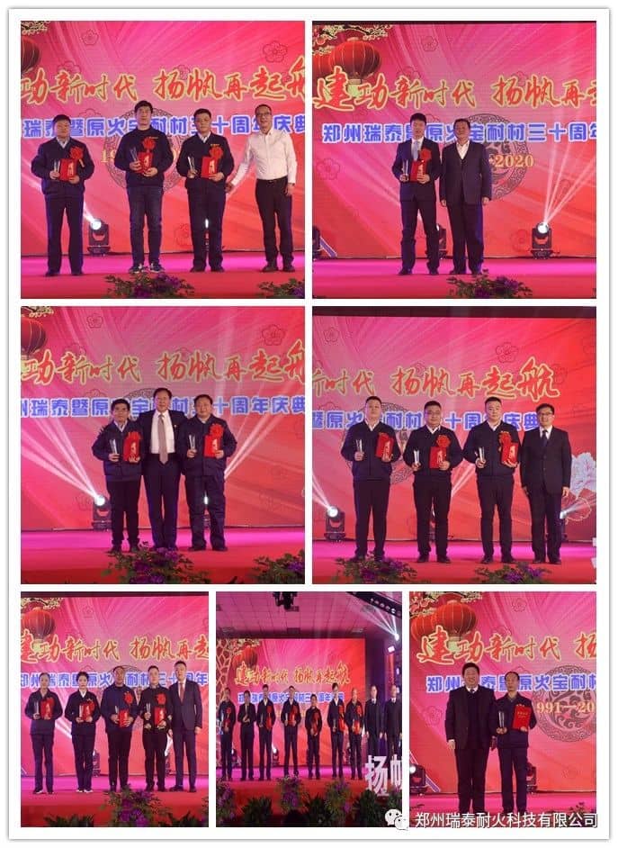 在鄭州瑞泰30年歷程里,有一批陪伴鄭州瑞泰一路陽光一路風(fēng)雨的瑞泰人,他們見證了鄭州瑞泰的成長與發(fā)展,他們堅守崗位、腳踏實地,為企業(yè)的蓬勃發(fā)展默默地發(fā)揮著自己的光和熱。鄭州瑞泰取得的30年輝煌成績的同時,也不曾忘記兢兢業(yè)業(yè)為企業(yè)發(fā)展做出過貢獻的員工。慶典活動上,瑞泰科技總經(jīng)理陳海山、常務(wù)副總經(jīng)理袁林,鄭州瑞泰黨委書記、董事長李泉侑及相關(guān)領(lǐng)導(dǎo)為20名突出貢獻獎員工進行頒獎。