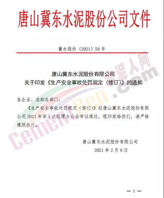 唐山冀東水泥股份有限公司《生產(chǎn)安全事故處罰規(guī)定》全文如下:
