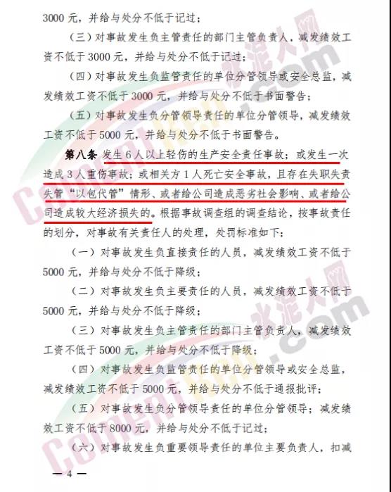 據(jù)水泥人網(wǎng)了解,金隅冀東內(nèi)部一直都有規(guī)定,凡發(fā)生事故的企業(yè)從上至下全部處以金額不等的罰款,年終獎勵也按比例減少,相關(guān)責(zé)任人甚至?xí)唤德毣蛘咿o退。