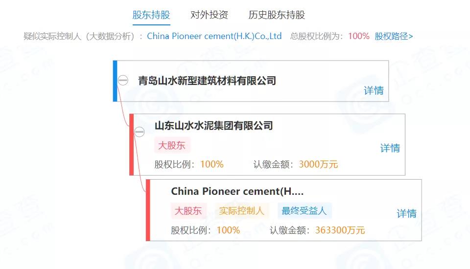 據(jù)查閱,山水新建成立于2021年2月23日,法定代表人為毛守學,注冊資本為3000萬元人民幣。其經(jīng)營范圍包括水泥制品制造、水泥制品銷售等。該公司目前由山水水泥持股100%。