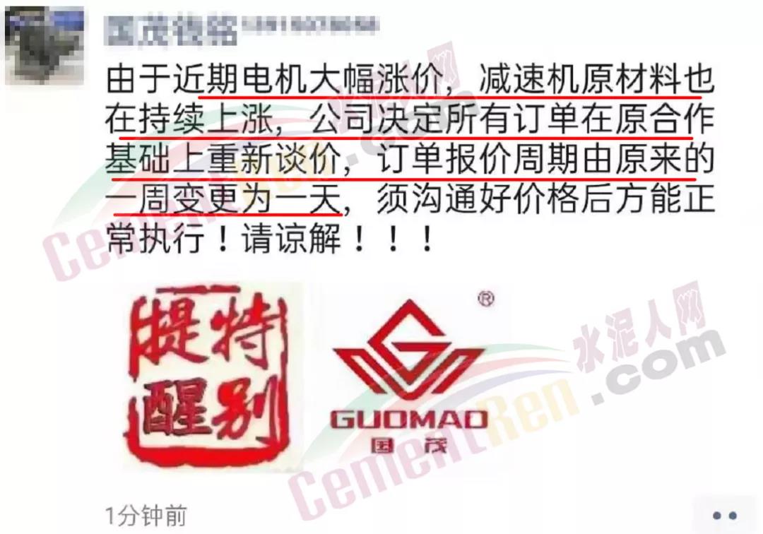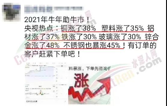 近日,水泥行業(yè)的上游供應商“炸鍋了”,設備供應商“漲價函”滿天飛,只因為:銅漲了38%、塑料漲了35%、鋁材漲了37%、鐵漲了30%、玻璃漲了30%、鋅合金漲了48%、不銹鋼也暴漲45%。