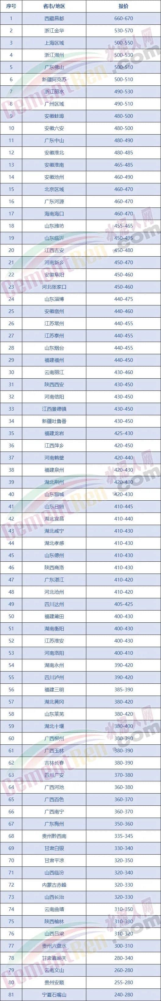 3月12日湖北宜昌地區(qū)水泥價格上漲30元/噸,現(xiàn)宜昌地區(qū)主流品牌P.O42.5散裝水泥報價430-450元/噸。