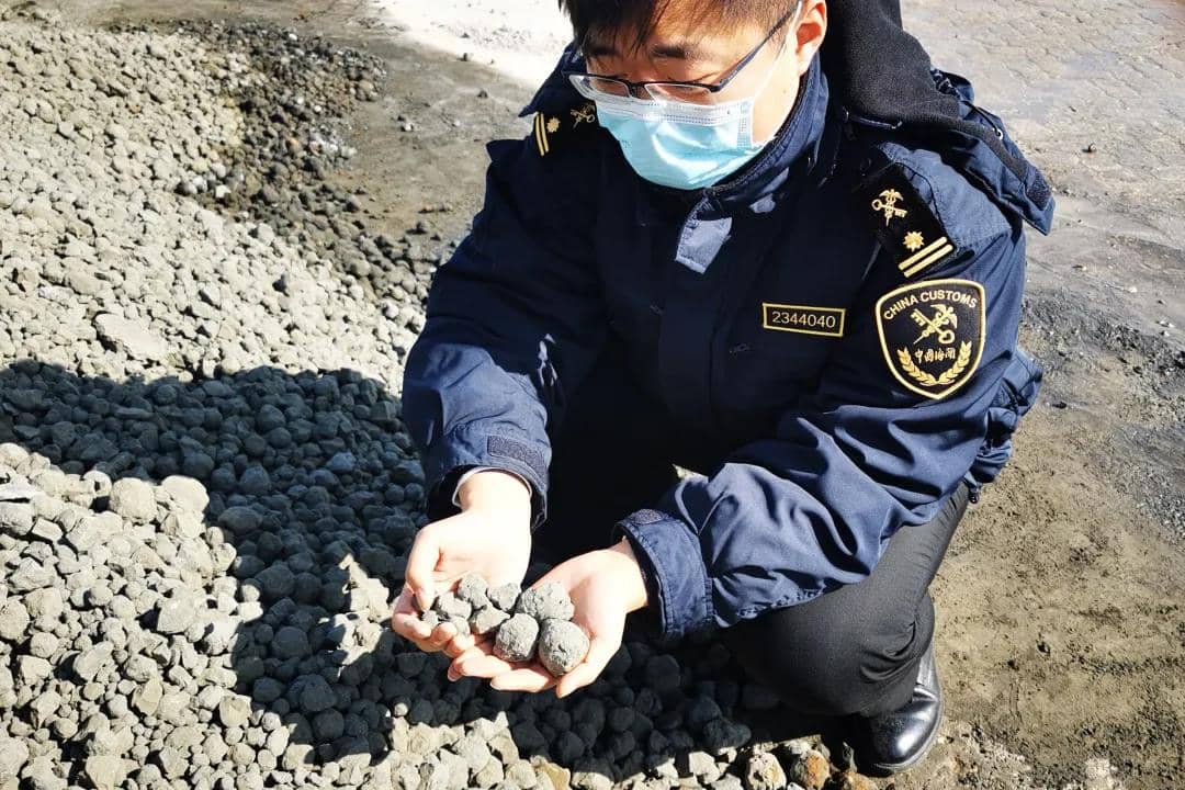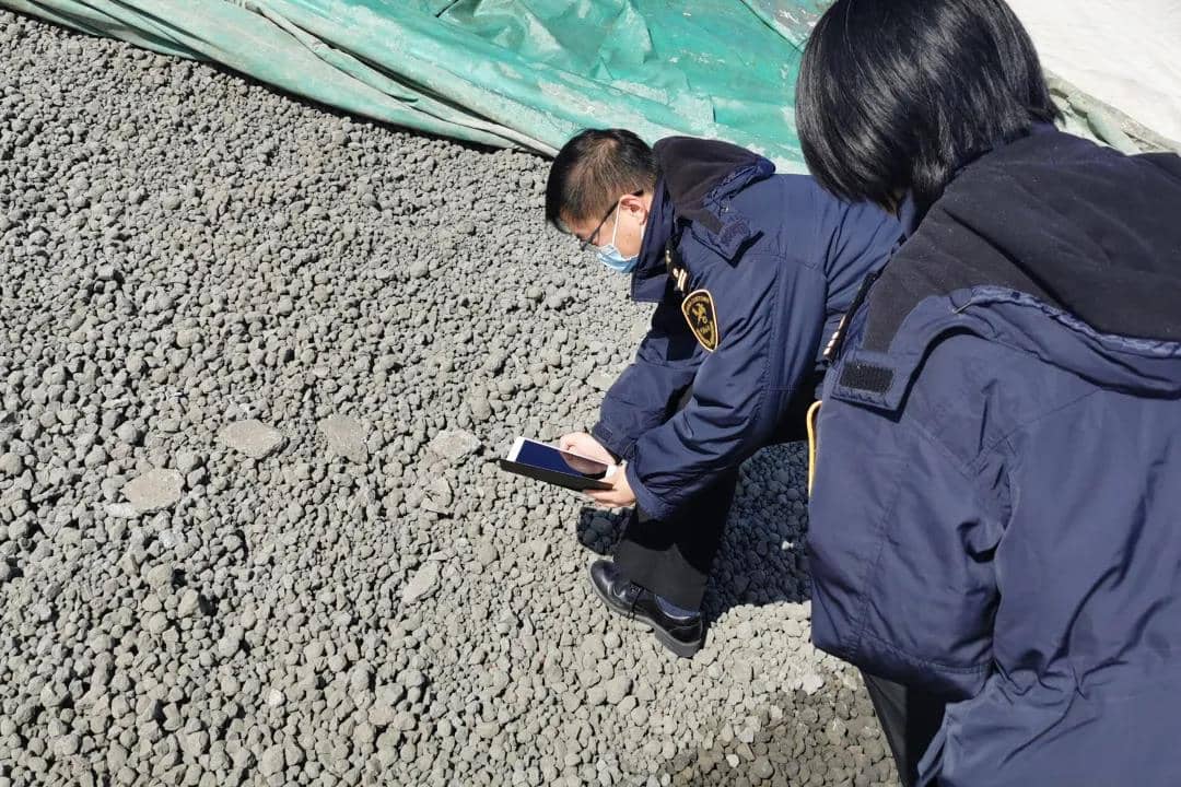 海關關員現(xiàn)場查驗進口水泥熟料