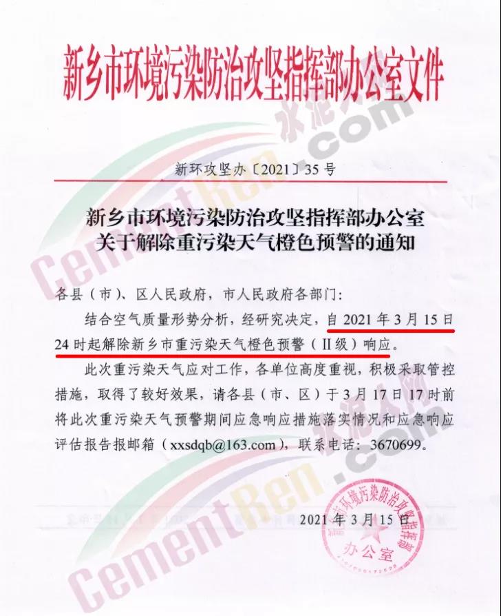 日前,河南省、河北省以及天津市等陸續(xù)發(fā)布解除重污染天氣橙色預(yù)警的通知。解除通知后工地可以正常復(fù)工、水泥企業(yè)也可以恢復(fù)生產(chǎn)。