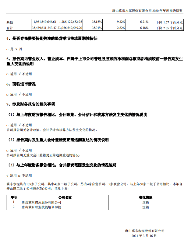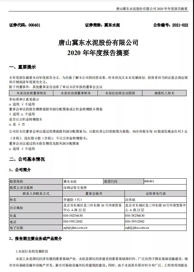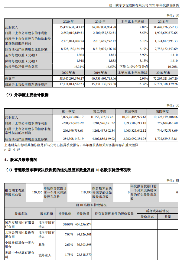 冀東水泥計劃2021年全年實現(xiàn)營業(yè)收入358億元!