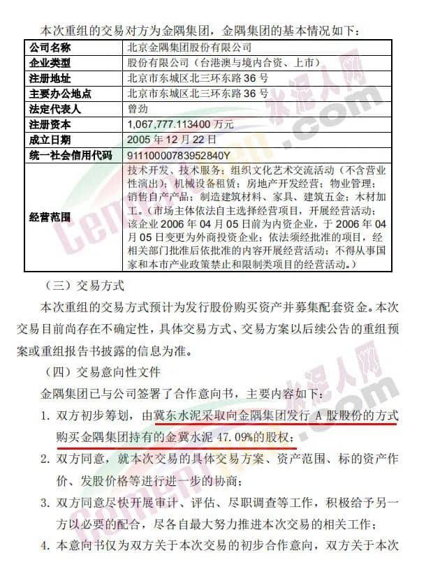 資料顯示,金冀水泥成立于2018年6月1日,注冊(cè)資本為400000萬(wàn)元,經(jīng)營(yíng)范圍為硅酸鹽水泥、熟料、混凝土、砂石骨料、干粉砂漿的制造銷(xiāo)售及相關(guān)建材的制造、銷(xiāo)售及相關(guān)技術(shù)咨詢、服務(wù);塑料編織袋加工、銷(xiāo)售等。