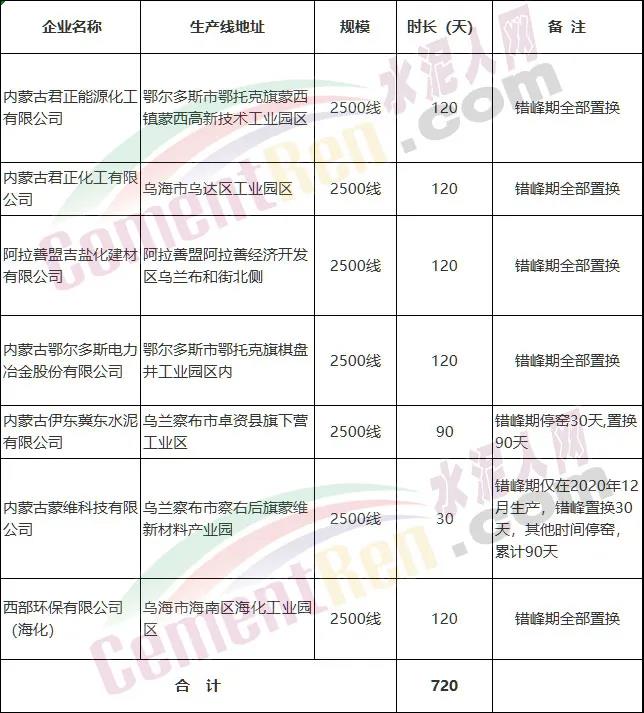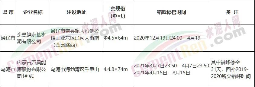 水泥熟料生產(chǎn)線錯峰生產(chǎn)停窯企業(yè)(第二批)清單