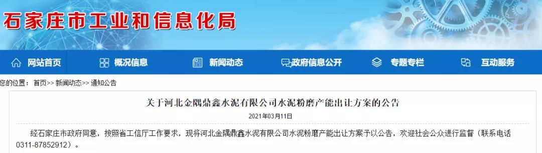 河北金隅鼎鑫水泥有限公司水泥粉磨產(chǎn)能出讓方案
