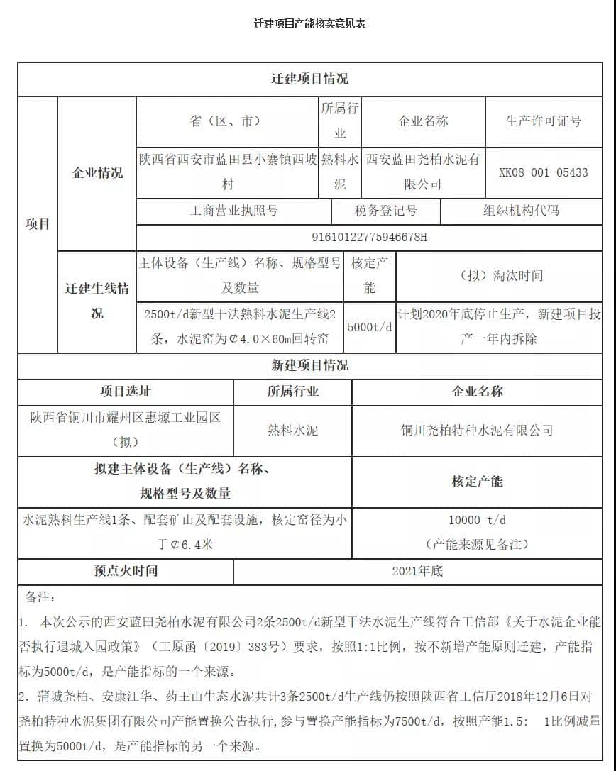 巨大社會(huì)貢獻(xiàn)及稅收,也伴隨著重污染。2019年11月,銅川市人民政府發(fā)布《關(guān)于西安藍(lán)田堯柏水泥有限公司2×2500t/d新型干法熟料水泥生產(chǎn)線遷建我市的公示》稱,確定藍(lán)田堯柏水泥廠將退城入園,入駐耀州區(qū)惠源工業(yè)園區(qū),預(yù)計(jì)在2021年底點(diǎn)火投產(chǎn),新項(xiàng)目投產(chǎn)舊項(xiàng)目即停產(chǎn),一年內(nèi)拆除。