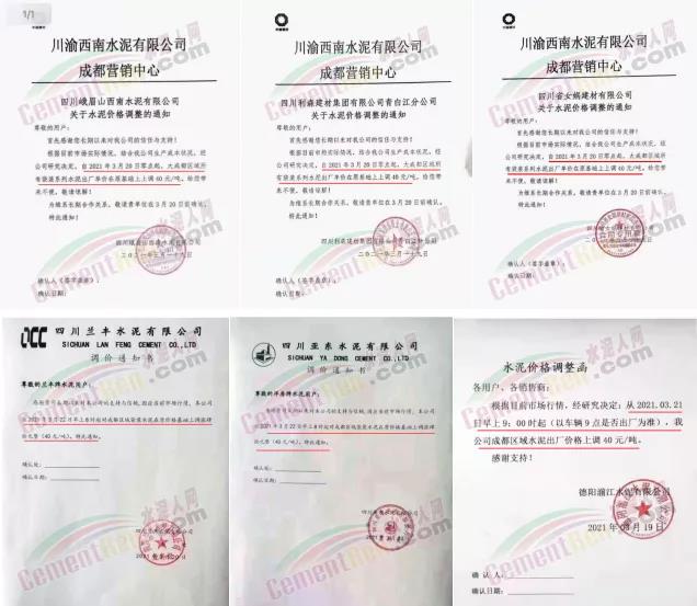 3月中旬以來四川區(qū)域西南水泥、亞東水泥、峨勝水泥等多家主要品牌企業(yè)陸續(xù)通知上調(diào)水泥價格30-40元/噸。
