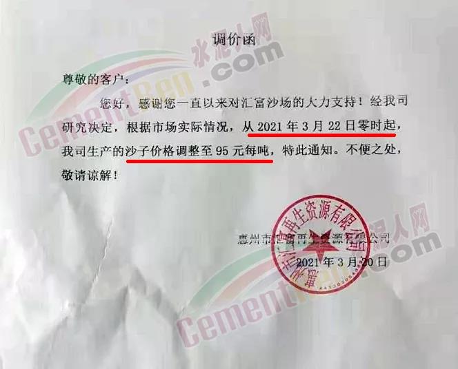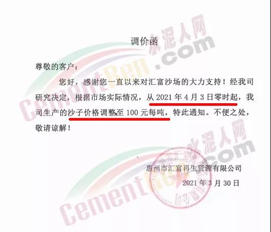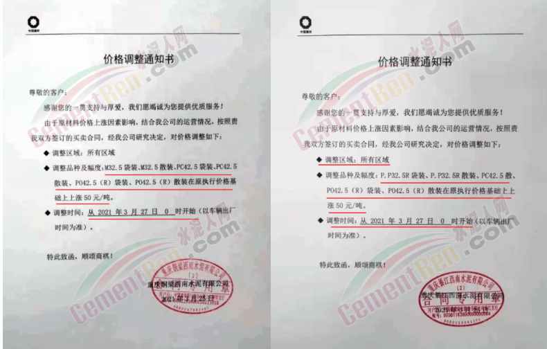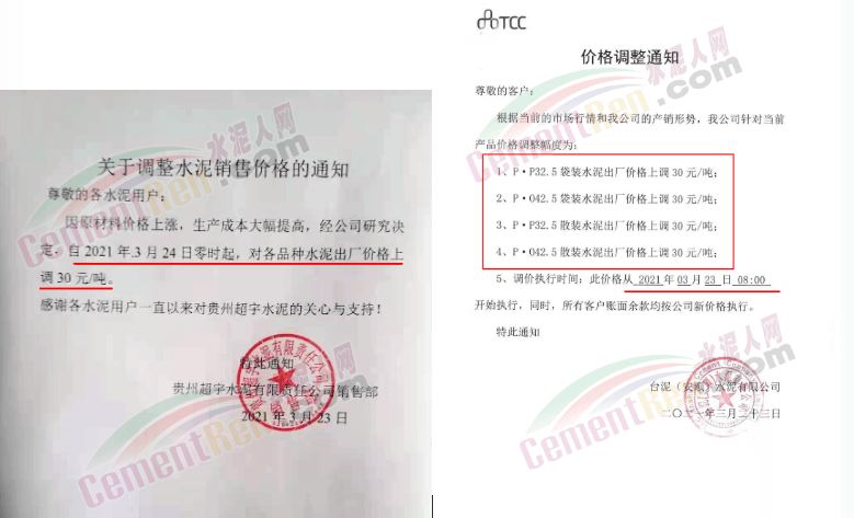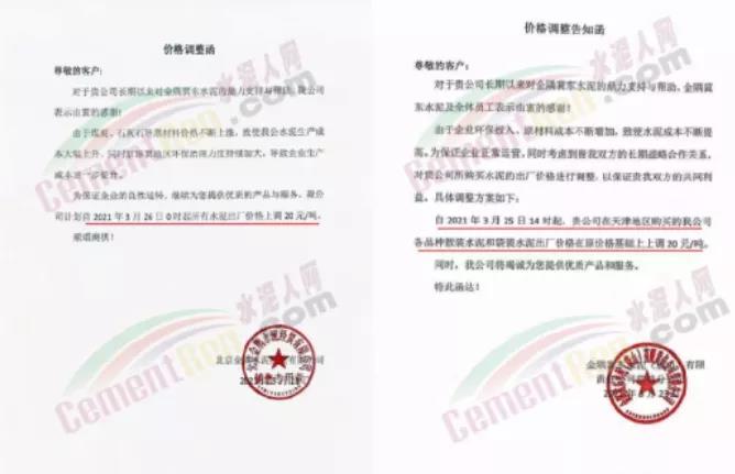 水泥調(diào)價(jià)通知