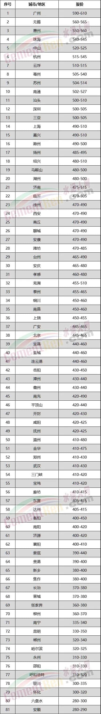 數(shù)據(jù)來(lái)源:水泥人網(wǎng)信息中心人工采集,僅供參考,如與實(shí)際成交不符,請(qǐng)以實(shí)際成交為準(zhǔn)。