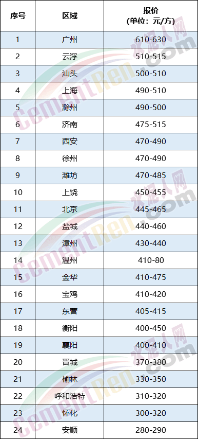 數(shù)據(jù)來源:水泥人網(wǎng)信息中心人工采集,僅供參考,如與實際成交價格不符,請以實際成交價格為準(zhǔn)。