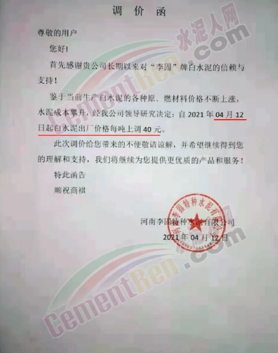 與此同時,經銷商收到通知河南區(qū)域水泥價格自15日起上漲50元/噸的消息,且要求經銷商于今日(15日)早8點前確認完畢。