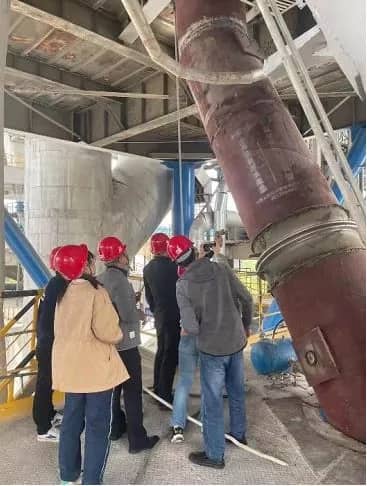 覌摩期間天津院、晶牛集團(tuán)、邯鄲水泥使用企業(yè)三家人員對(duì)現(xiàn)場(chǎng)測(cè)定五級(jí)下料管只有70余度驚嘆不已。