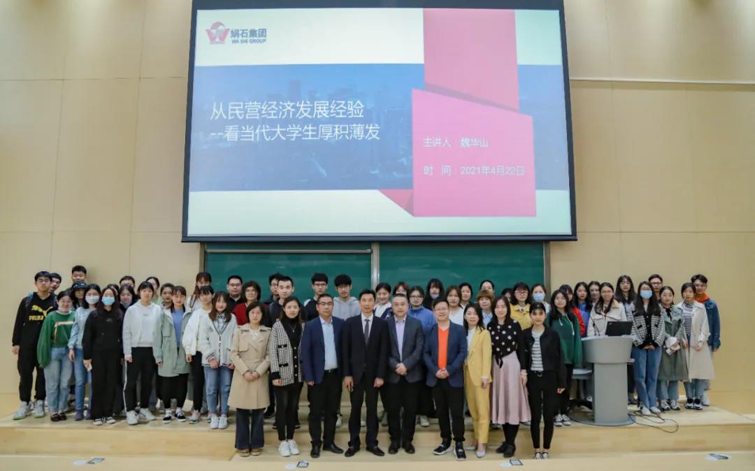 楊武副書記對(duì)講座進(jìn)行了點(diǎn)評(píng)。楊武副書記認(rèn)為魏董事長(zhǎng)的講座是一堂生動(dòng)的思政課與職業(yè)規(guī)劃課。媧石集團(tuán)的發(fā)展歷程是波瀾壯闊的黨史、改革開放史的一個(gè)縮影,正是因?yàn)橛袐z石集團(tuán)這樣能夠順應(yīng)時(shí)代潮流,不屈不撓、銳意改革、不懈奮斗的企業(yè),我們的國(guó)家才能取得今天舉世矚目的成就,正是有這樣的企業(yè),我們更加堅(jiān)定了對(duì)中國(guó)特色社會(huì)主義道路的認(rèn)同。楊武副書記指出,魏董事長(zhǎng)所展現(xiàn)的敢于擔(dān)當(dāng)、銳意進(jìn)取、艱苦奮斗的中國(guó)企業(yè)家精神與強(qiáng)烈的家國(guó)情懷和社會(huì)責(zé)任感值得我們學(xué)習(xí)。楊武副書記勉勵(lì)同學(xué)們,要向魏董事長(zhǎng)學(xué)習(xí),堅(jiān)定理想信念,練就過(guò)硬本領(lǐng),昂揚(yáng)奮斗精神,力求知行合一,將自身發(fā)展的“小我”融入黨和國(guó)家發(fā)展的“大我”中,為建設(shè)社會(huì)主義現(xiàn)代化強(qiáng)國(guó)、為中華民族偉大復(fù)興貢獻(xiàn)自己的力量。