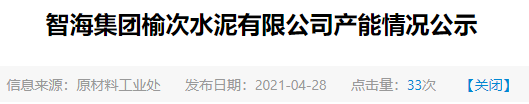 日前,山西省工信廳發(fā)布《智海集團榆次水泥有限公司產(chǎn)能情況公示》稱,按照相關(guān)文件要求現(xiàn)將智海集團榆次水泥有限公司產(chǎn)能情況予以公示。