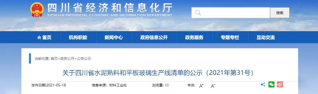 根據(jù)工業(yè)和信息化部辦公廳和國家發(fā)展改革委辦公廳《關(guān)于嚴(yán)肅產(chǎn)能置換水泥平板玻璃行業(yè)新增產(chǎn)能的通知》(工信廳聯(lián)原〔2018〕57號)及工業(yè)和信息化部《關(guān)于更新并公開水泥平板玻璃生產(chǎn)線清單的函》(工原函〔2019〕527號)有關(guān)要求,我廳對全省水泥熟料和平板玻璃生產(chǎn)線上報(bào)情況進(jìn)行了審核匯總(截止到2020年12月31日),現(xiàn)將更新后的全省水泥熟料和平板玻璃生產(chǎn)線清單以公示,公示期自2021年5月14日至5月20日(5個(gè)工作日)。公示期內(nèi)如有異議,請向四川省經(jīng)濟(jì)和信息化廳材料工業(yè)處反映。