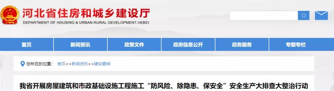 近日,河北省住房和城鄉(xiāng)建設(shè)廳印發(fā)通知,5月底前在全省開展房屋建筑和市政基礎(chǔ)設(shè)施工程施工“防風(fēng)險(xiǎn)、除隱患、保安全”安全生產(chǎn)大排查大整治行動(dòng)。具體通知如下: