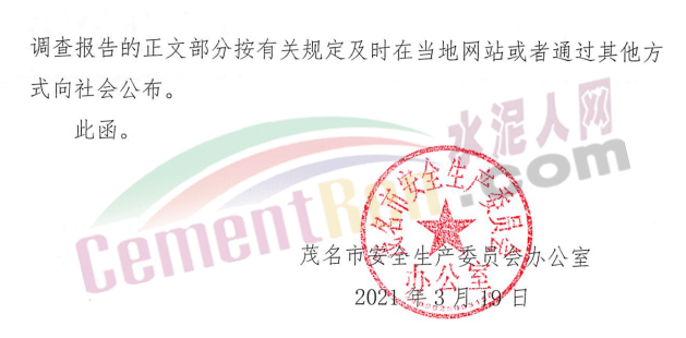 日前,廣東省茂名市茂南區(qū)人民政府發(fā)布《關(guān)于對(duì)茂南區(qū)茂名石化勝利水泥有限公司“3·15”一般高處墜落事故掛牌督辦的函》稱,根據(jù)相關(guān)通知要求,對(duì)茂南區(qū)茂名石化勝利水泥有限公司“3·15”一般高處墜落事故調(diào)查處理工作實(shí)行掛牌督辦。具體通知如下: