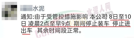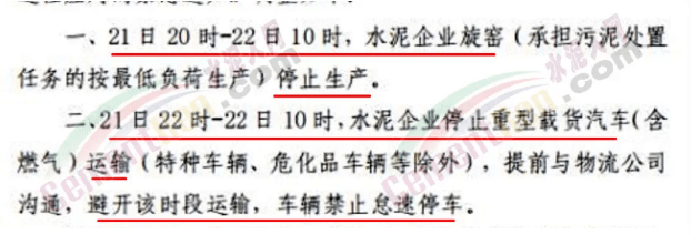 每日2時至9時,所有企業(yè)重型柴油貨車允許進(jìn)廠、不允許出廠,避免運(yùn)輸車輛在大門口怠速停車。應(yīng)上述要求,區(qū)域內(nèi)水泥企業(yè)陸續(xù)通知下游客戶停止裝車以及停止運(yùn)輸車輛進(jìn)廠時段。