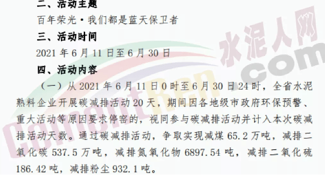 據(jù)水泥人網(wǎng)了解,河北省建材協(xié)會日前剛發(fā)布通知,要求省內(nèi)水泥企業(yè)從2021年6月11日0時至6月30日24時開展碳減排活動20天,而唐山本次的管控截止時間是從6月7日22時至6月10日20時。