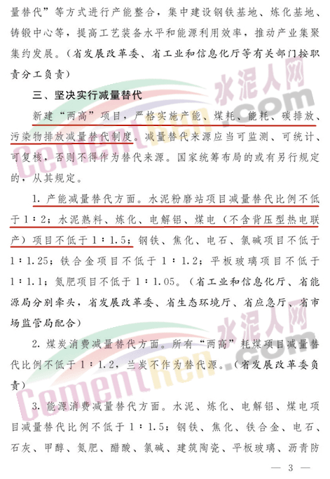 產(chǎn)能減量替代方面:水泥粉磨站項目減量替代比例不低于1∶2,水泥熟料項目減量替代比例不低于1∶1.5;