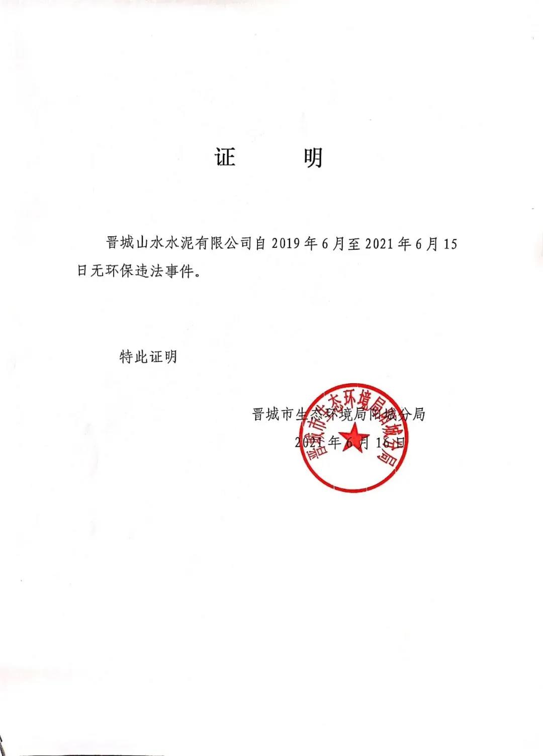 日前,晉城山水水泥有限公司發(fā)布《近三年來(lái)無(wú)較大及以上安全、環(huán)保、質(zhì)量事故聲明》稱,