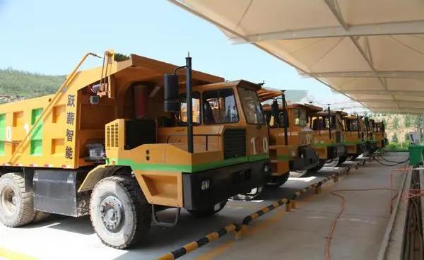 河南能源焦煤公司千業(yè)水泥5G無人駕駛運輸車正在充電站進行充電攝影/劉建軍
