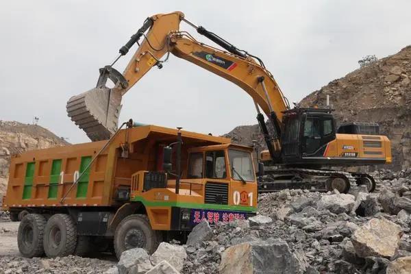 河南能源焦煤公司千業(yè)水泥5G無人駕駛挖掘機正在露天礦區(qū)現(xiàn)場作業(yè)攝影/劉建軍