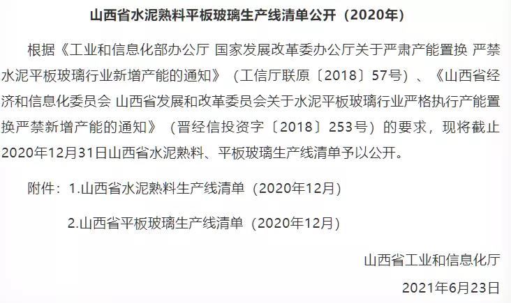 日前,山西省工信廳將截止至2020年12月31日的水泥熟料生產(chǎn)線(xiàn)清單予以公開(kāi)。