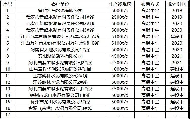水泥窯煙氣SCR脫硝工程業(yè)績表