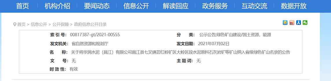 石灰?guī)r礦等礦山納入省級綠色礦山名錄的公告