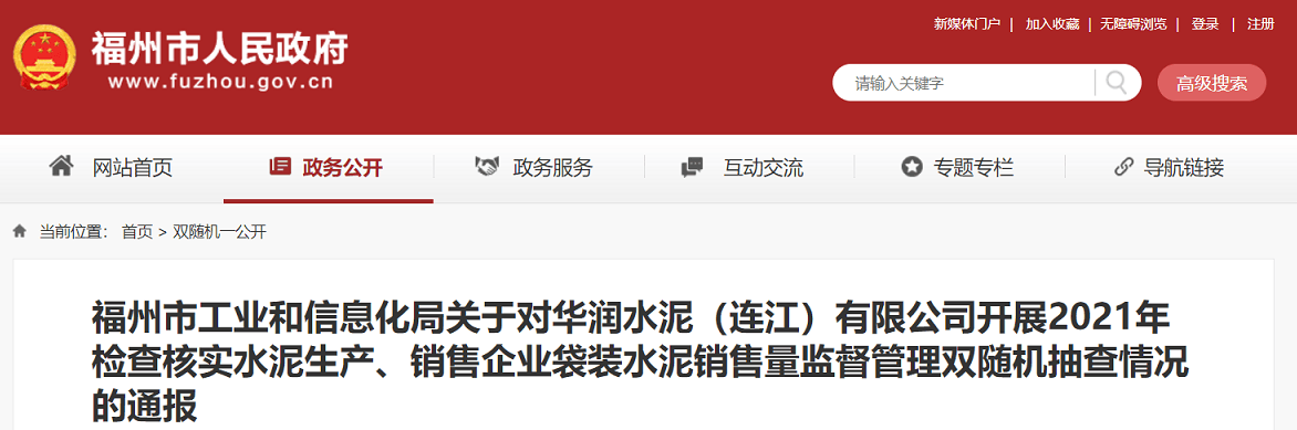 近日,福州市人民政府通報了福州市工信廳對華潤水泥袋裝水泥檢查結(jié)果,如下: