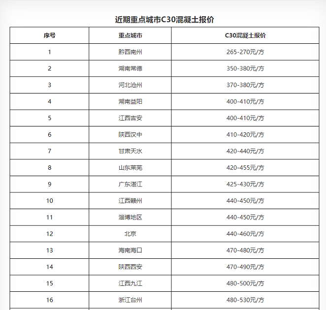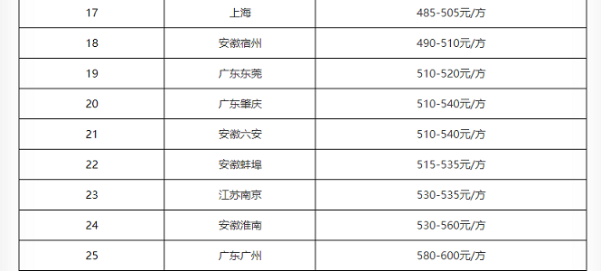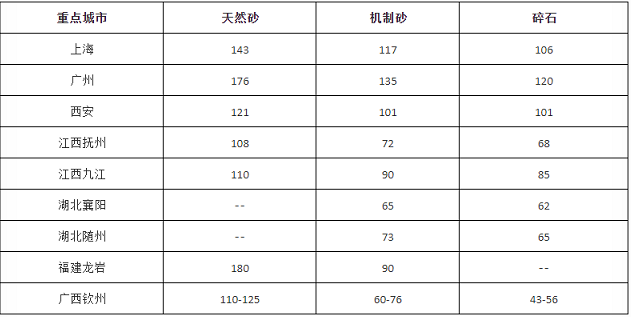 近期重點城市砂石報價