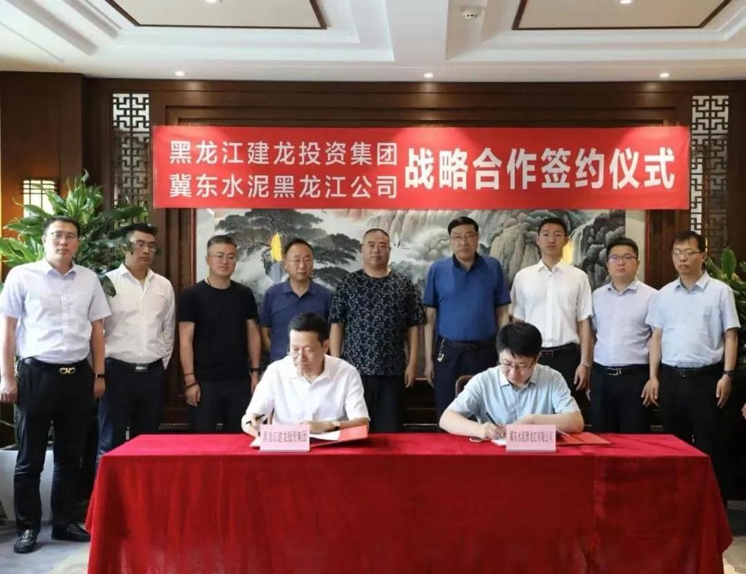 為落實冀東水泥股份與建龍集團在北京簽訂的《全產業(yè)鏈戰(zhàn)略合作協(xié)議》精神,2021年6月30日,在吉黑區(qū)域黨委書記李曉明,北京建龍重工集團副總裁、黑龍江建龍投資集團總經理魏國棟等領導的共同見證下,冀東水泥黑龍江有限公司經理王俊華與建龍投資集團劉鳳和副經理簽署了戰(zhàn)略合作協(xié)議。