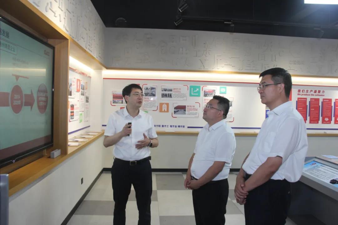 劉洪鵬一行冒著高溫天氣深入滕州中聯(lián)創(chuàng)新工作室、廢棄石灰石綜合利用生產(chǎn)線(xiàn)現(xiàn)場(chǎng)進(jìn)行調(diào)研。公司黨委書(shū)記、總經(jīng)理王亞軍詳細(xì)匯報(bào)了公司2021年上半年經(jīng)營(yíng)業(yè)績(jī)完成情況、經(jīng)營(yíng)創(chuàng)新發(fā)展歷程、科技創(chuàng)新、管理創(chuàng)新及綠色低碳循環(huán)發(fā)展工作開(kāi)展情況。