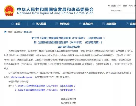日前,國家發(fā)改委發(fā)布了《全國失信懲戒措施基礎清單(2021年版)(征求意見稿)》公開征求意見的公告》其中清單所列失信懲戒措施包括三類,共14項: