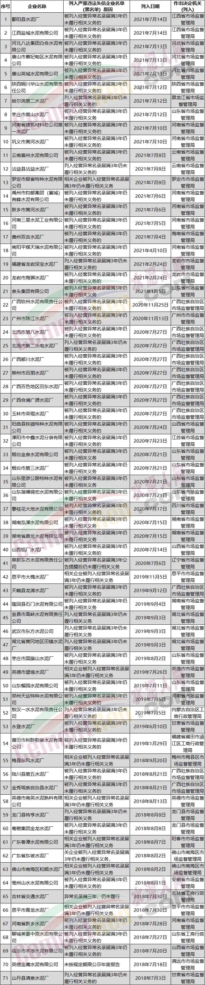 圖片71家水泥企業(yè)被列嚴重違法失信企業(yè)“黑名單”