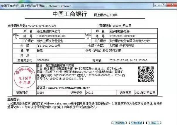春江集團捐款500萬支援防汛:7月22日上午,“全國優(yōu)秀共產(chǎn)黨員”輝縣市張村鄉(xiāng)裴寨村黨支部書記兼村委會主任、春江集團黨委書記裴春亮同志代表集團向新鄉(xiāng)市慈善總會捐款500萬元,用于防汛搶險救災(zāi)。這是新鄉(xiāng)市慈善總會收到的第一筆防汛救災(zāi)捐款。